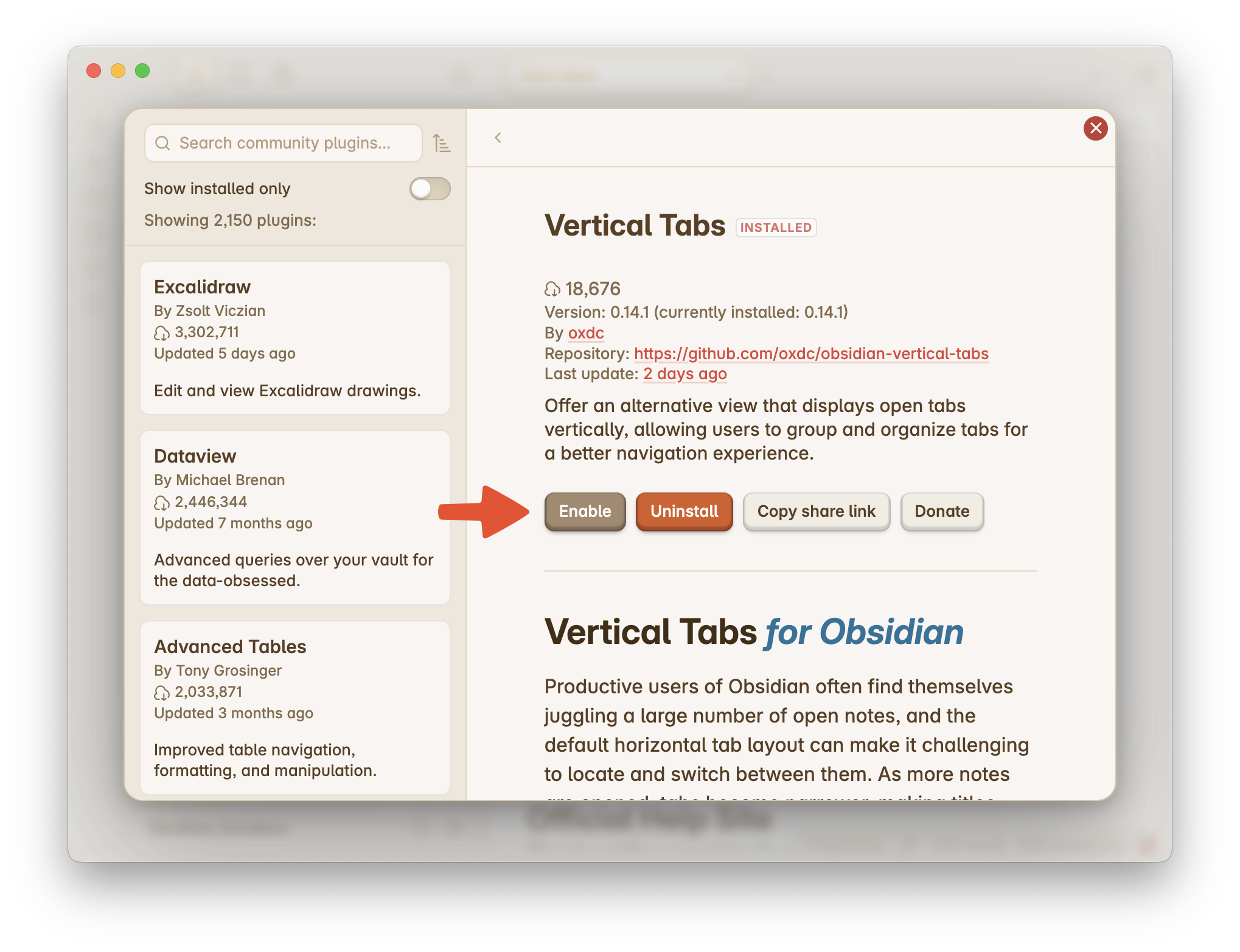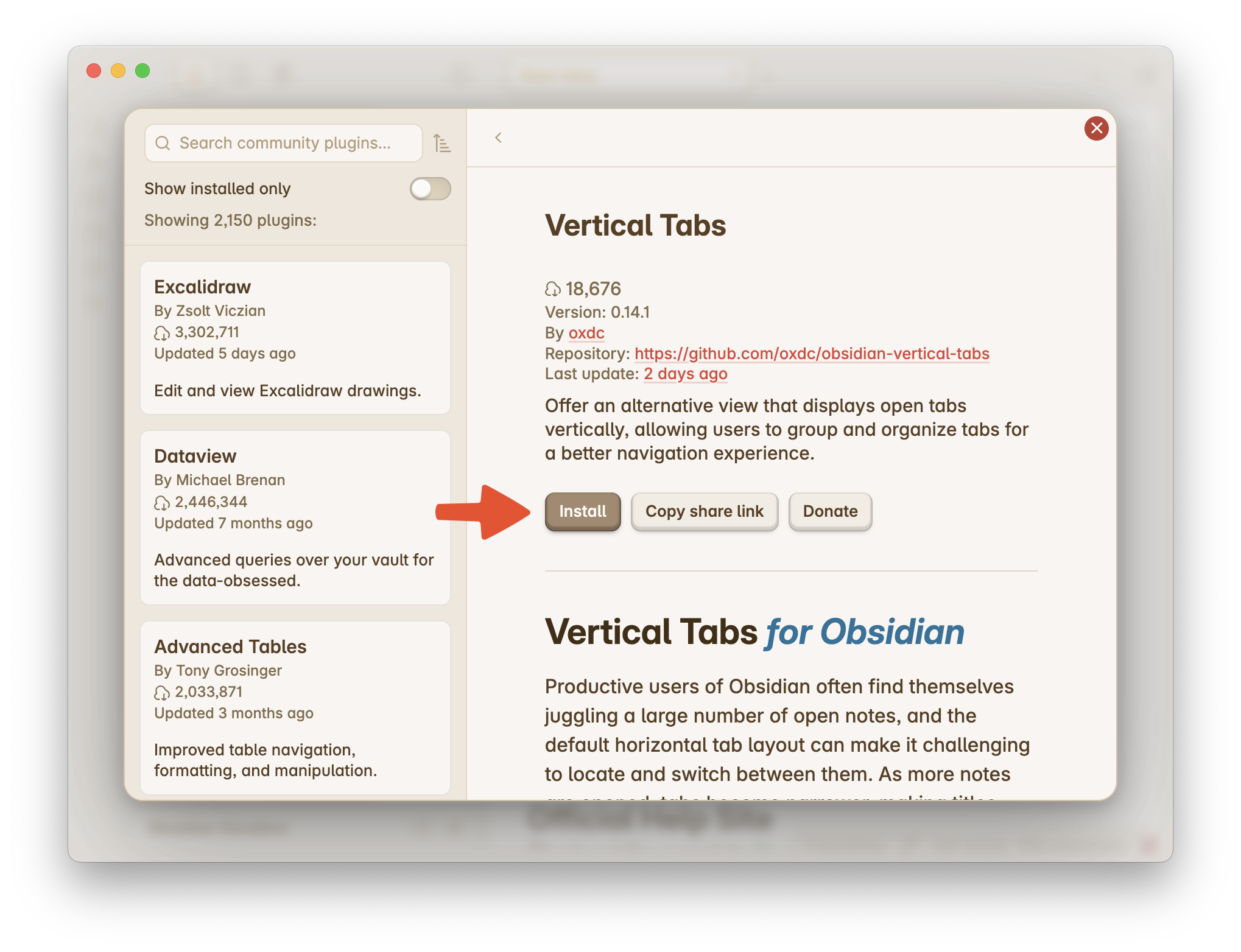 - Install Obsidian Plugin Update Tracker in your vault. This plugin will notify you when a new version of Vertical Tabs (or any other plugin) is released.