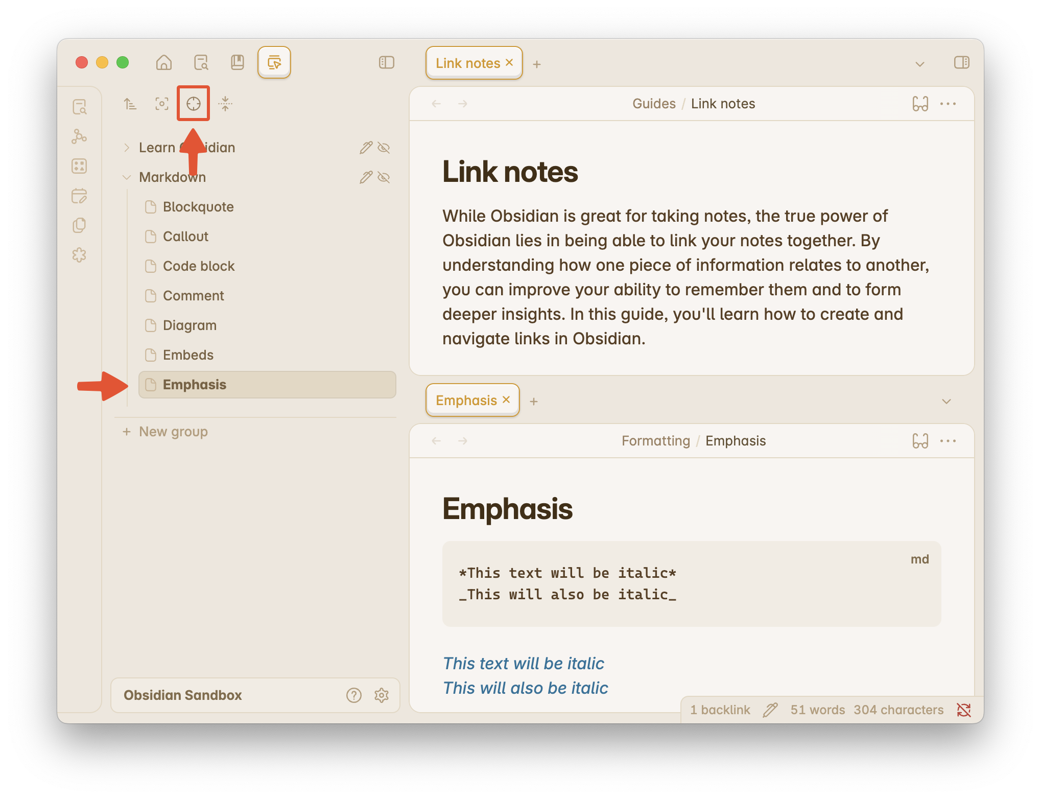 If you get lost in your workspace and can’t find the active tab in Vertical Tabs, click the target icon (), and it will reveal and scroll to that tab.